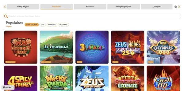 Les joueurs de machines à sous peuvent filtrer par thème, volatilité et fonctionnalités pour trouver ce qui correspond à leur style. Cela inclut des classiques, des machines à sous vidéo modernes, des bonus riches en fonctionnalités et des formats jackpot, dont une zone dédiée aux machines à sous Casimba. Si vous voulez jouer à des machines à sous en ligne sans vous presser, de nombreux titres proposent un mode démo, et vous pouvez passer à l’argent réel plus tard dans la même session. Pour ceux qui préfèrent les cartes et les roues, vous trouverez plusieurs variantes de blackjack et de roulette, ainsi que des jeux de type poker avec différents ensembles de règles. Dans la section live, la roulette avec croupier en direct est facile à trouver, avec des limites de table affichées clairement avant de rejoindre.